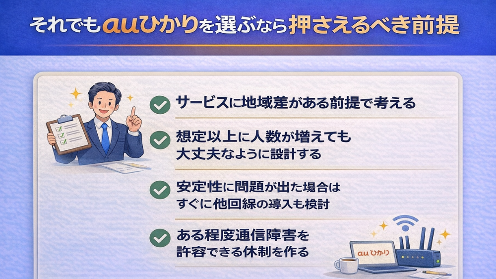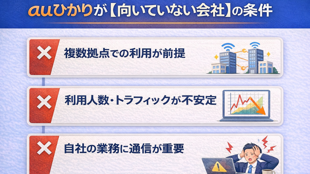 auひかりは、法人向け回線として「万能な選択肢」ではありません。