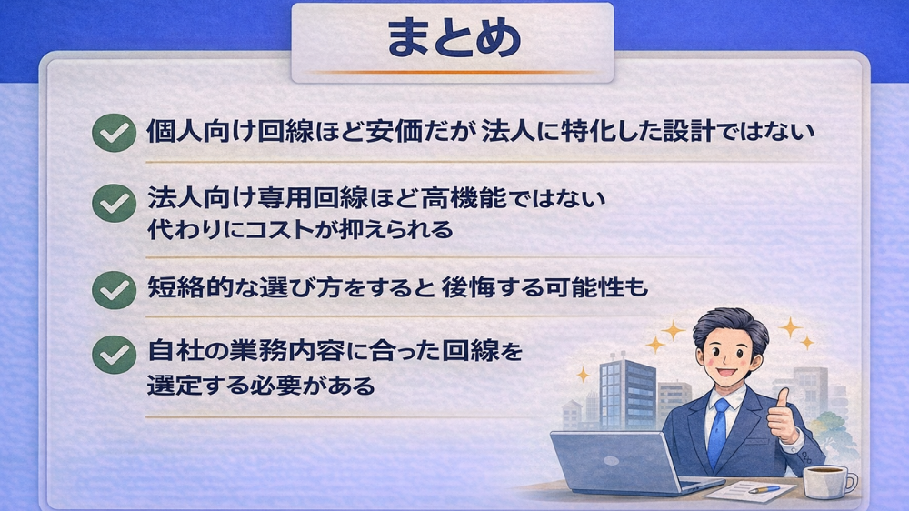 「この回線は、そもそも法人利用を前提に設計されているのか」という点です。