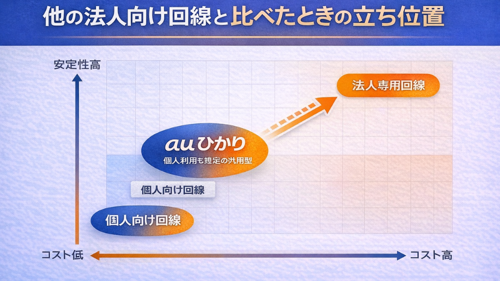 auひかりは**“汎用回線を業務利用に転用している”立ち位置**にあります。