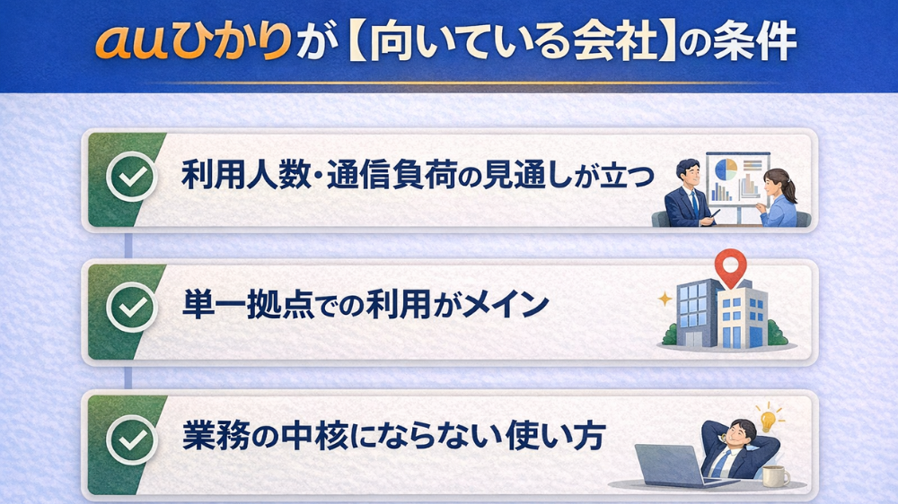 auひかりは、条件が合う会社にとっては非常に合理的な選択肢になる一方、
