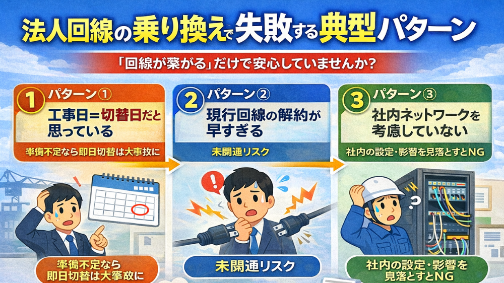 それは「回線を切り替える」という一点だけを見て、前後の工程を分解していないことです。ここでは、実際に多くの現場で繰り返されている代表的な失敗パターンを整理します。