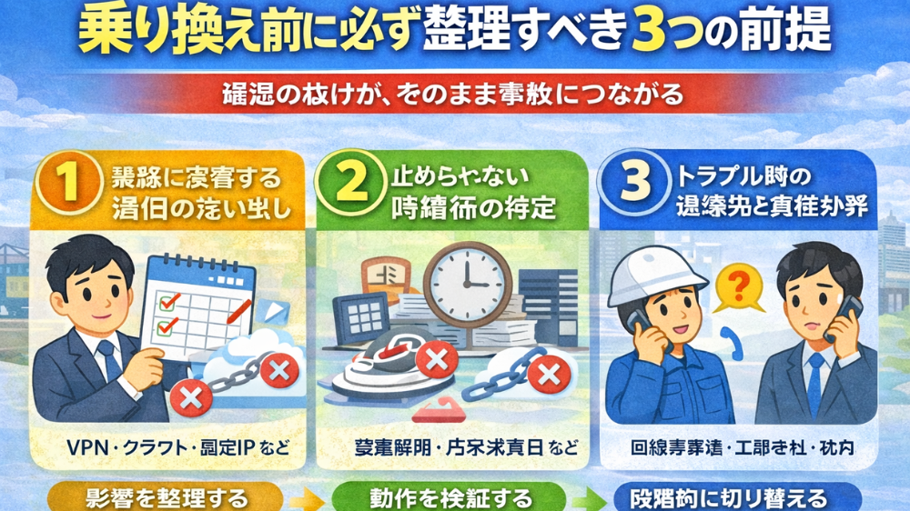 ここでやるべきことは、回線を選ぶことではありません。業務への影響を整理し、切替に耐えられる状態を作ることです。