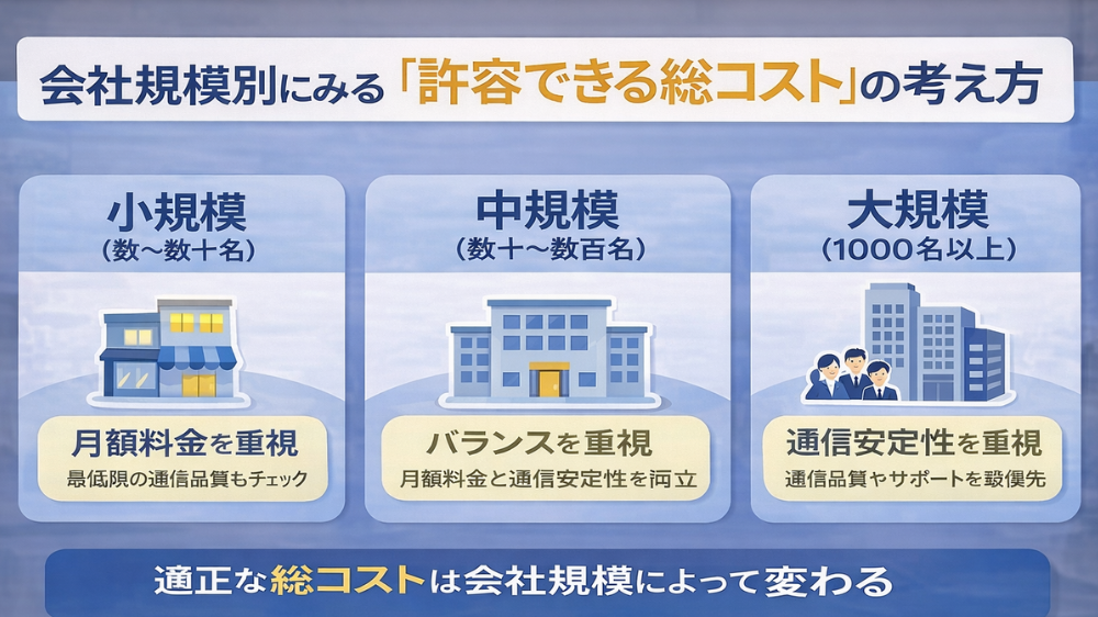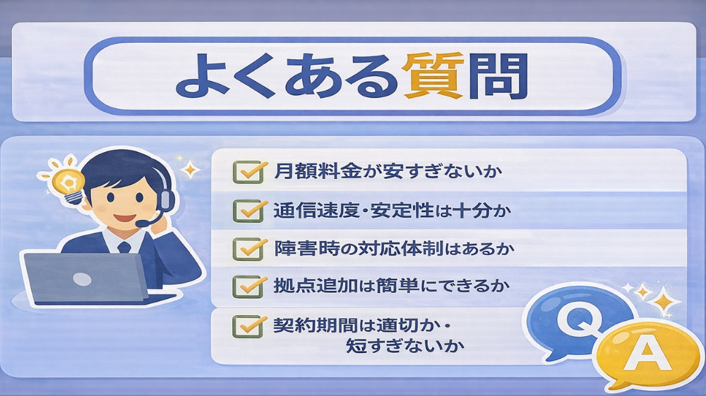 実際の負担は、初期費用、社内対応工数、通信トラブルによる停止損失、将来の切り替えや拠点追加にかかる手間まで含めて考える必要があります。