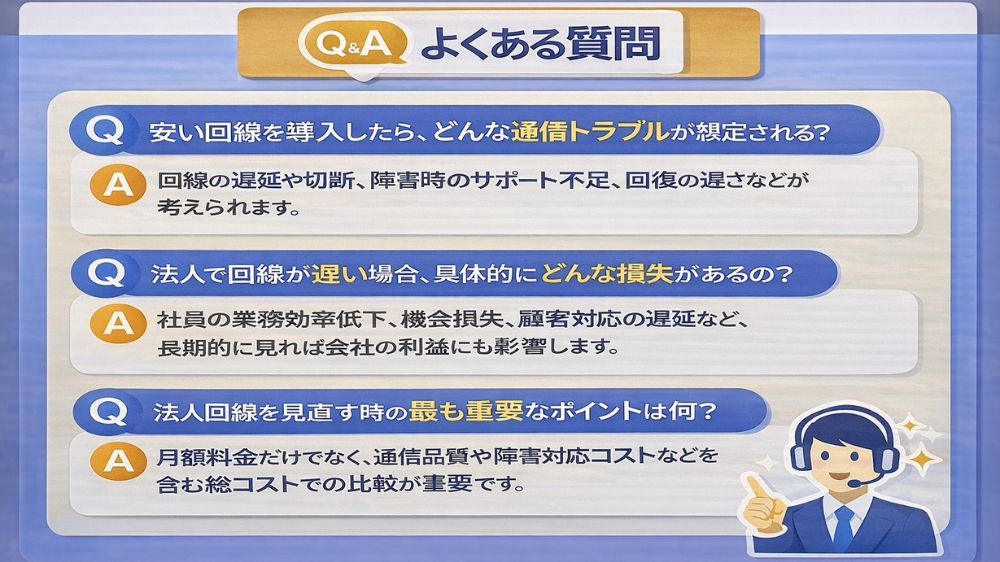 ここでは、法人回線の総コストについて、よくある疑問をまとめました。