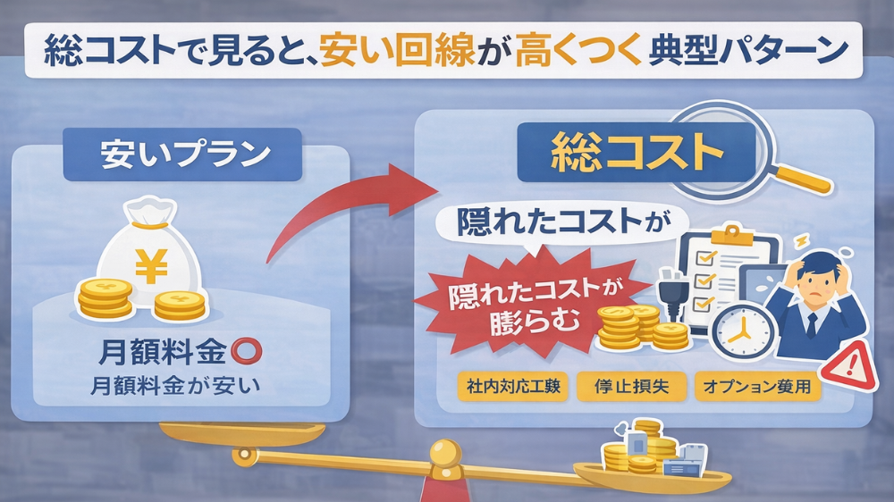 月額が安い回線と、本当に総コストが低い回線は、必ずしも同じではありません。