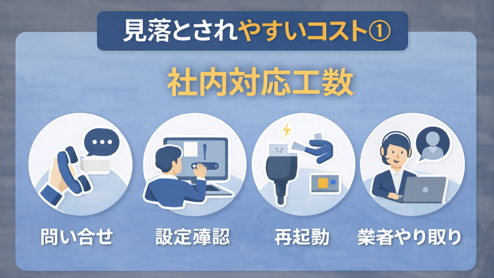 問い合わせ、設定確認、障害対応、社内説明といった負担は請求書には出ませんが、確実に人件費として積み上がります。