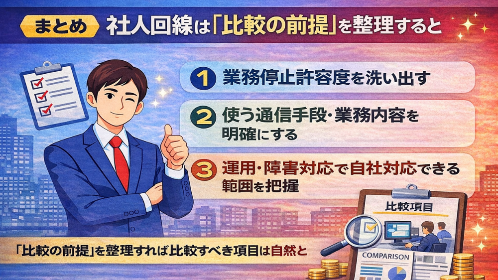 まとめ|法人回線は「比較の前提」を整理すると失敗しにくい