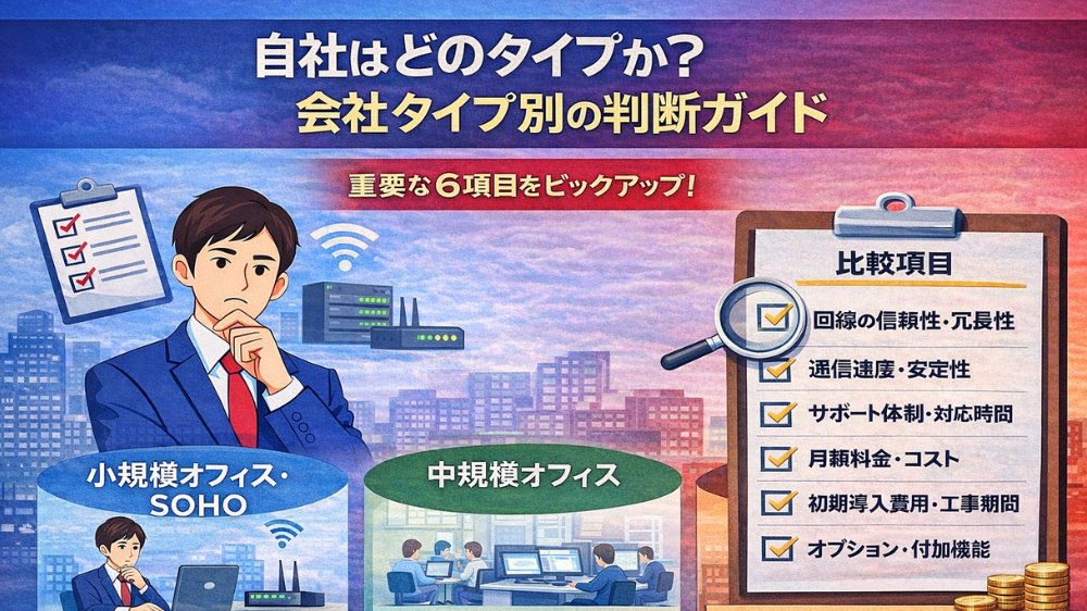 特に、社内に情シス担当がいない中小企業や小規模事業者では、回線そのものの性能だけではなく、自社の業務内容・止まったときの影響・社内で対応できる範囲を先に整理しておくことが重要です。